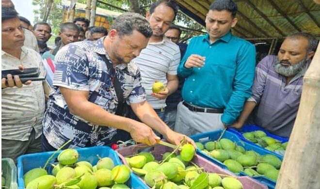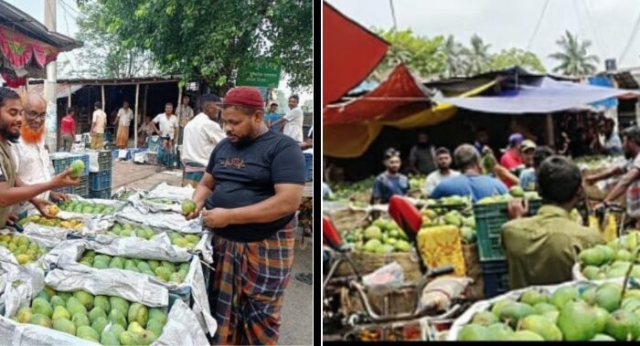 জাকির হেসেন, শার্শা প্রতিনিধি:- যশোরের শার্শা উপজেলায় প্রতিদিন ৬ কোটি টাকার আম বিক্রি হয় যে বাজারে ক্যারেটে সাজিয়ে রাখা হয়েছে বিভিন্ন জাতের আম বেলতলা দেশের অন্যতম বড় আমের বাজার। এ