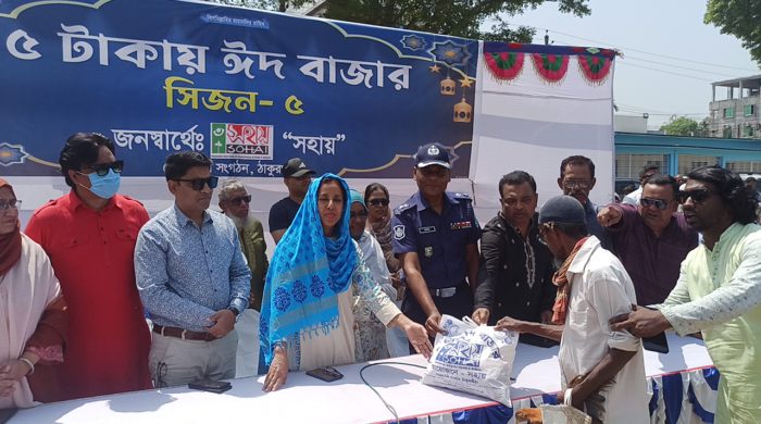 মাত্র পাঁচ টাকায় ঈদের বাজার করতে পেরে খুশি ঠাকুরগাঁওয়ের পাঁচ শতাধিক পরিবার। শনিবার (২৯ মার্চ) সকালে ঠাকুরগাঁও সরকারি বালক উচ্চ বিদ্যালয়ের বড় মাঠে স্থানীয় মানবিক স্বেচ্ছাসেবী সংগঠন ‘সহায় জুলুমবস্তি’ এই